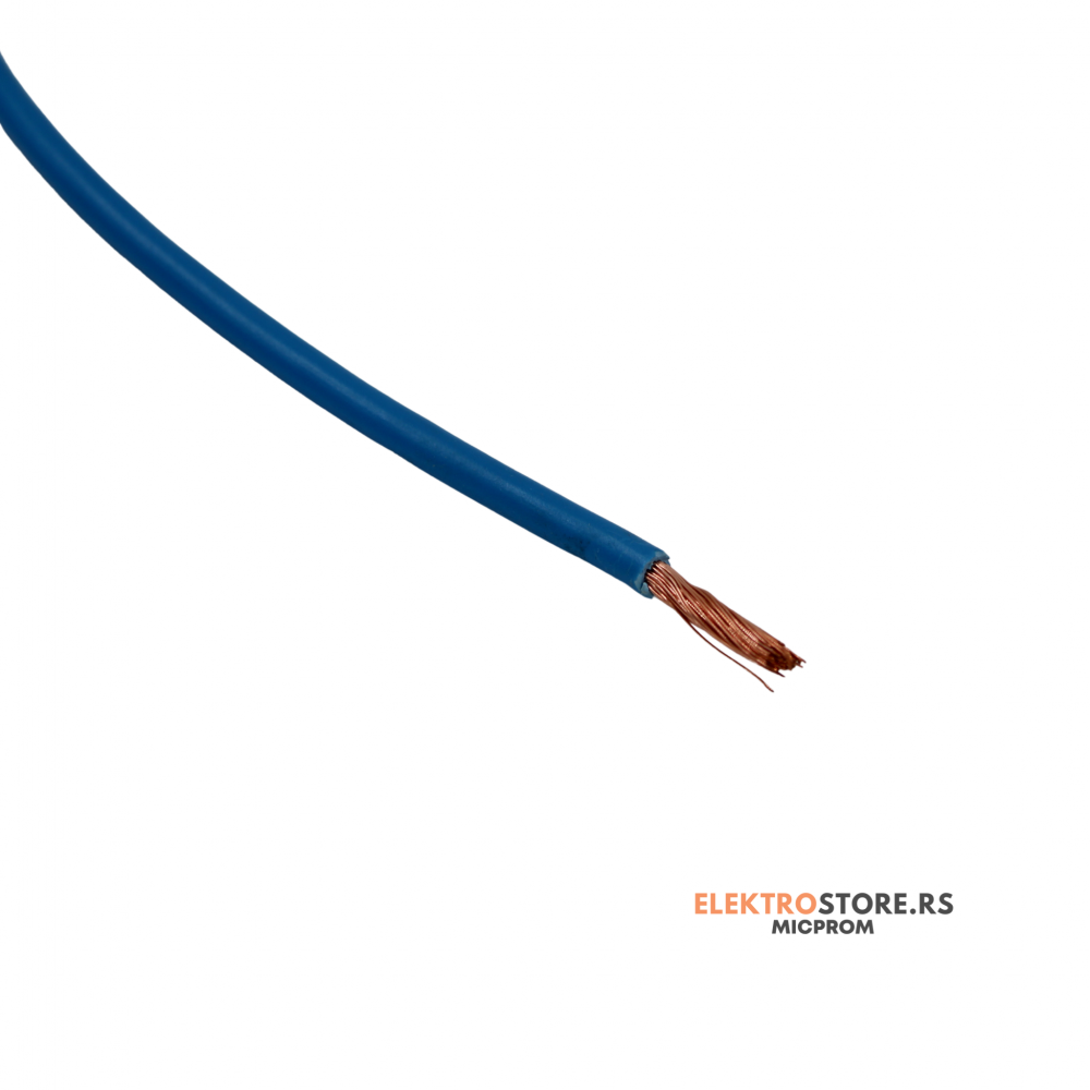 Fleksibilna bakarna žica P-F sa PVC izolacijom i presekom od 10 mm² u plavoj boji, pogodna za zahtevne elektroinstalacije u razvodnim ormarima, elektroormarima i industrijskim postrojenjima. Zbog finožičnog bakarnog provodnika lako se oblikuje, što omogućava brzu i preciznu montažu.
